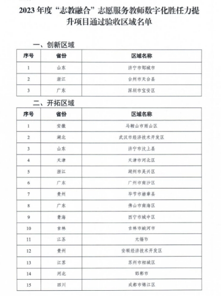 近日,教育部教育技术与资源发展中心(中央电化教育馆)公布2023年度“志教融合”志愿服务教师数字化胜任力提升项目验收通过区域名单。东胜区通过验收并被评定为“开拓区域”。