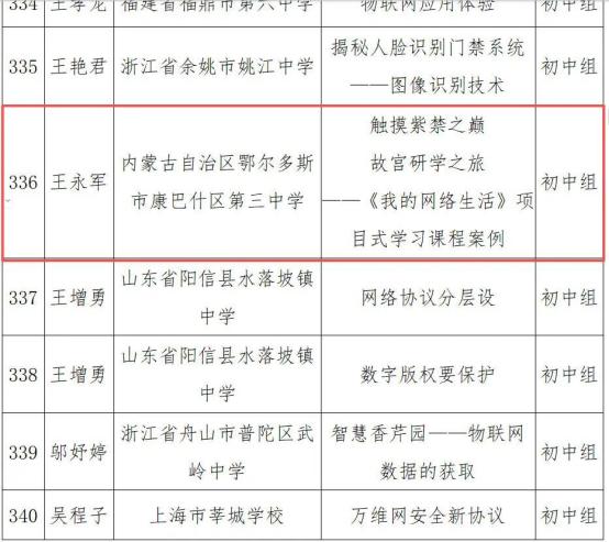 近日,活动结果名单公布,在此次案例征集活动中,我区信息科技教师凭借扎实的专业素养与创新的教学实践,交出了亮眼答卷:实验小学李媛媛老师的课例《二值的黑白图像》、第三中学王永军老师的项目式学习课程案例《触摸紫禁之巅 故宫研学之旅——我的网络生活》,经过专家对提交课件的意识形态、主题贴切性和格式内容的严格审查,成功入围拟收录名单,将收录至中国教育学会中小学信息技术教育专业委员会智慧教师专业发展平台和中国教育学会官网会员专区。