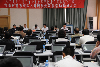 会上,宣读了《中共鄂尔多斯市教育局委员会关于在市直教育系统各级党组织和党员中深入开展创先争优活动的实施方案》,明确了教育系统创先争优活动的指导思想、目标任务、总体要求、活动内容、方法步骤和组织领导。市教育局党委副书记、局长阿拉腾乌拉同志结合我市教育实际就如何组织开展好创先争优活动提出了四点意见:一要充分认识开展创先争优活动对促进全市教育事业科学发展的重要意义。开展创先争优活动,有利于巩固扩大学习实践科学发展观活动成果;有利于推动我市教育事业又好又快发展;有利于提升基层党组织建设的科学化水平。二要准确把握工作重点,明确创先争优活动的正确方向。开展创先争优活动,要以创建“五个好”先进基层党组织、争做“五个模范”优秀共产党员为基本要求,努力实现“推动科学发展、促进社会和谐、服务人民群众、加强基层组织”的目标,推进教育事业和谐发展。三要创新载体,突出特色,推动创先争优活动深入开展。开展争先创优活动,要结合建设“学习型党组织”、建设“党员先锋岗”、“师德师风建设”、建立健全工作机制和提高教育教学质量五方面,创新载体,突出特色,抓实做好各项工作。四要加强领导,明确责任,确保争先创优活动取得实效。开展创先争优活动,要加强领导,精心组织;要广泛宣传,营造氛围;要选树典型,示范带动;要深入动员,开展评议。