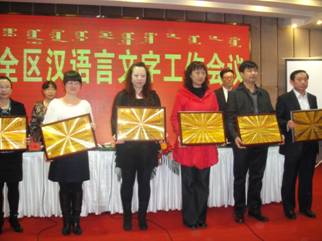 近日,全区2012年汉语言文字工作会议在呼和浩特市召开。自治区教育厅副总督学、自治区汉语委副主任张志宽同志出席会议,市教育局副局长刘海军同志代表我市在会上作了题为《以推普为重要载体,营造良好发展环境》的典型发言。市第一中学、伊金霍洛旗第一中学、达拉特旗第四幼儿园喜获“第三批自治区级语言文字规范化示范校(园)”荣誉称号。