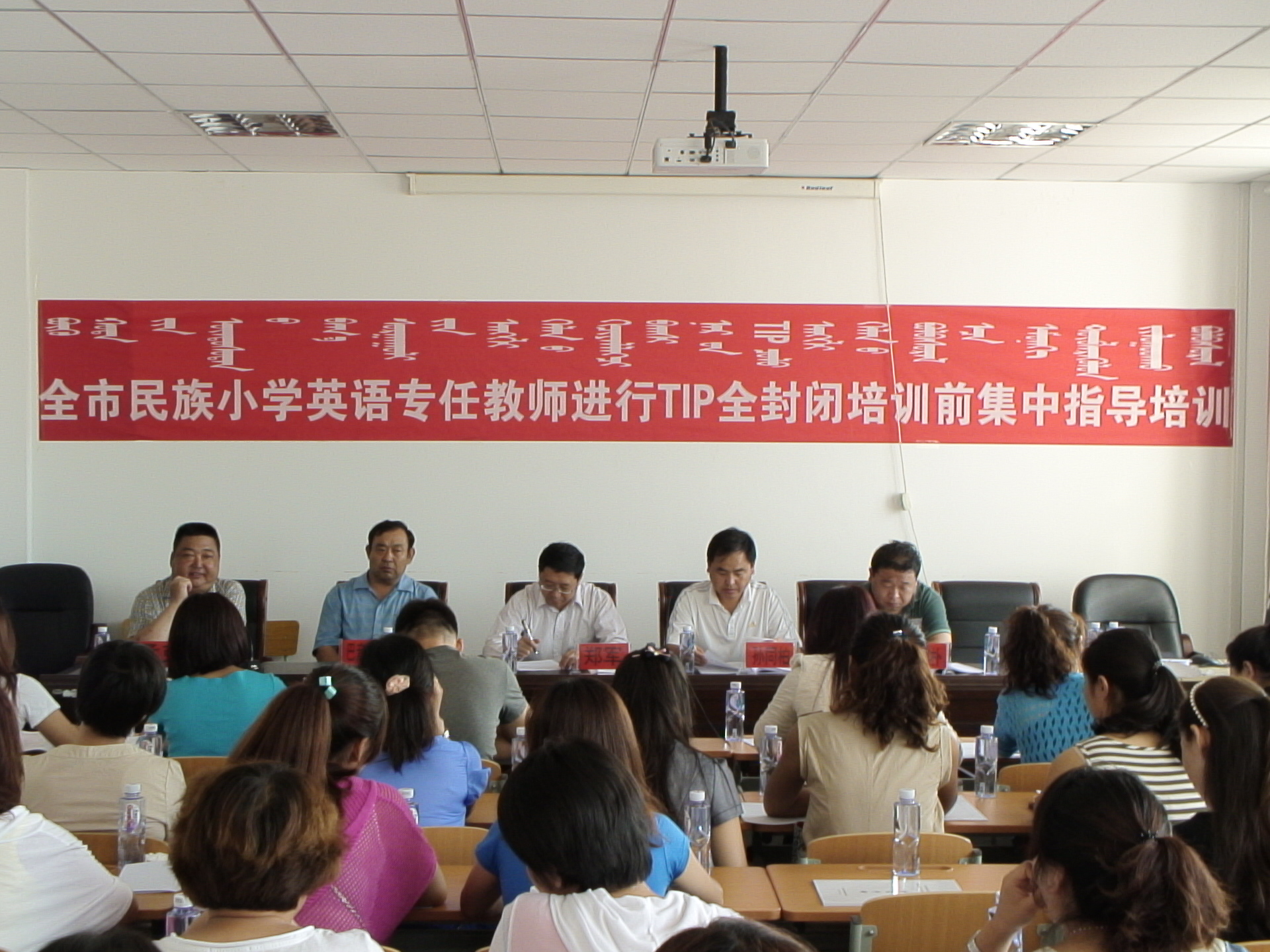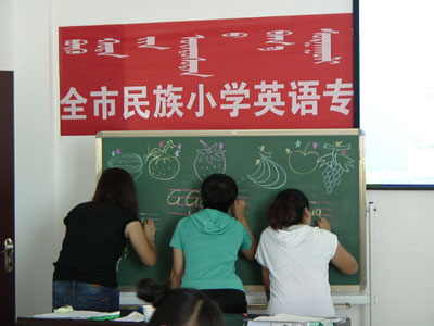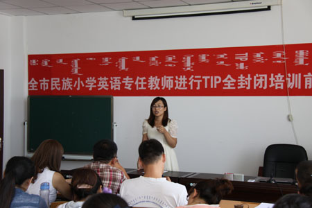 为建立和完善教师更新补充机制,加大教师分类培训力度,努力建设一支适应素质教育改革和发展要求、师德高尚、业务精湛、结构合理、专业化水平高的“三语型”、“双师型”教师队伍,8月12日至25日,市教育局组织开展了全市民族小学英语专任教师全封闭英语培训(TIP)前集中指导培训。为了办好这次培训,市教育局邀请黑龙江省大庆市国培教师孙同柏、于润朴及我市部分名师,通过开展讲座、分析案例等形式,有针对性的对广大参训教师进行集中培训。