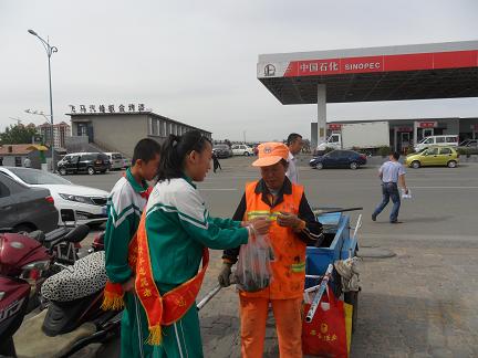 四是走访慰问传递暖暖温情。为丰富敬老院老年人文化生活,展现志愿者暖暖爱心,6月5日,实验小学组织20余名少先队员及团员志愿者,到育才社区开展“温情端午----志愿者在行动” 爱老敬老活动。他们为空巢老人们送去了礼物,还精心准备了歌曲、小品等精彩的节目,既让老人们感受到节日的喜悦,同时也提升了实验小学少先队员爱老敬老意识。为了让辛苦的环卫工人们也感受到节日温暖,6月6日,东胜区第六小学的孩子们开展了“温情端午”的活动。孩子们为校园周边的每位环卫工人准备了粽子,喜迎端午。