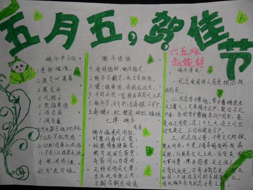 一是强化宣传营造浓厚氛围。端午节前夕,东胜区各中小学、幼儿园利用校园广播、国旗下的讲话、主题班队会、黑板报、手抄报等多种形式普及端午知识,让广大师生了解端午节的相关来历,传说故事和习俗活动,感受传统节日浓郁的文化气息,接受爱国主义教育和传统美德教育。6月7日,东胜区第八小学各班召开了“粽叶飘香,品味端午”主题班队会。活动主题鲜明、内容丰富、形式多样。活动中,学生们以中队为单位,吟唱关于端午的童谣和诗歌,展示自己制作的节日小报,邀请家长共度节日等;东胜区第一小学组织学生开展 “端午节”手抄报绘制活动。各班同学踊跃参与,通过阅读书籍和上网查询,了解屈原忧国忧民的爱国主义精神和端午节的来历、习俗,并配以插图、花边,制作了主题鲜明、富有新意的手抄报;东胜区华研中学开展了端午节寄情端阳主题班会,学校的家长委员会成员也一同参与,让学生在班会活动中了解端午节的来历、习俗等,感受端午节的文化内涵和独特魅力,激发学生的民族自豪感和爱国热情。
