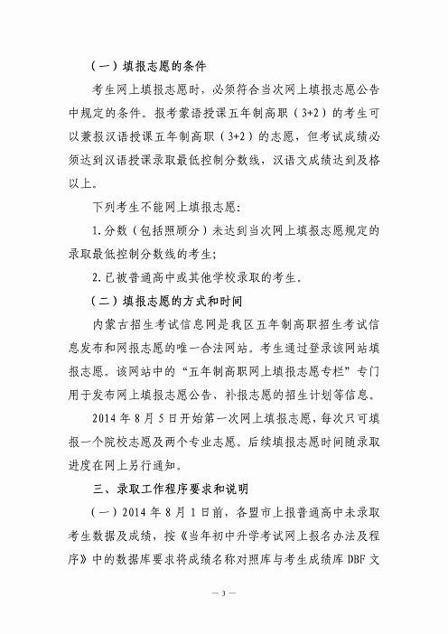 上一条:关于2014年全区初中升学招生考试统一网上报名、录取时段的通知 下一条:补报-准旗民中加授蒙语统招志愿(187分-100分)志愿填报情况统计表