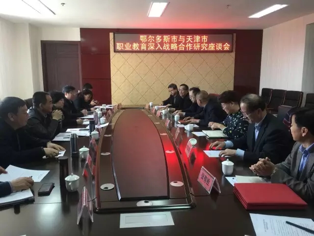 座谈会上,天津市教委吕主任提出,2017年要深化两地合作,统筹指导两地职教对口衔接,支持鄂尔多斯市职业教育改革发展;借助国家中西部地区职业教育师资培训中心为鄂尔多斯市职业院校管理人员、专业教师提供精细化、专题化培训;两地要在中高职衔接、国际化合作、技能大赛、教育实操、教学组织、信息化资源建设、学生的社会实践等方面广泛开展合作;要组建团队,派出天津地区职业教育领军人物,赴鄂尔多斯市职业院校观摩指导和培训。吕主任特别强调,两地合作要强化精准引领,职业教育要回归初心、回归尝试、回归本原,要把鄂尔多斯作为国家职业教育改革创新示范区成果推广区,真正实现共研、共建、共享、共用、共赢。鄂尔多斯市教育局局领导在发言中强调,两地职业教育的深入合作,将有效提升我市职业院校办学水平和质量,有利于培养高素质的技术技能型人才,对我市经济社会发展具有重要的意义。