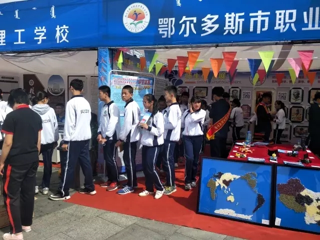 5月8日上午,东胜区实验中学、第六中学、实验小学、第十二小学师生800余人到东胜区青铜器文化广场参与职教活动周职业教育展示和体验活动,学生们观摩了职业院校师生的书画、手工艺、雕刻、插画、园艺等创意作品,现场体验了3D打印技术,品尝了自制酸奶与甜品,对职业院校师生的专业技能展示留下了深刻印象。此次活动,搭建了职教和普通中小学校学生面对面交流的平台,加强了职业院校与普通中小学校的联系,为做好中小学生职业启蒙教育奠定了基础。