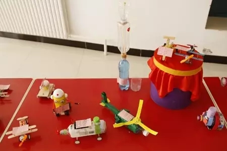 活动中,形式多样、丰富多彩的作品凝聚着孩子、家长和老师们共同的智慧,如布贴画、种子画、编织、捏泥巴等这些精美的作品既体现了孩子的动手能力,也展现了孩子们的奇思妙想,令来园参观的领导和家长们啧啧称赞,一些有趣生动又蕴含科学原理的科技小作品更是令大家驻足观摩思考。