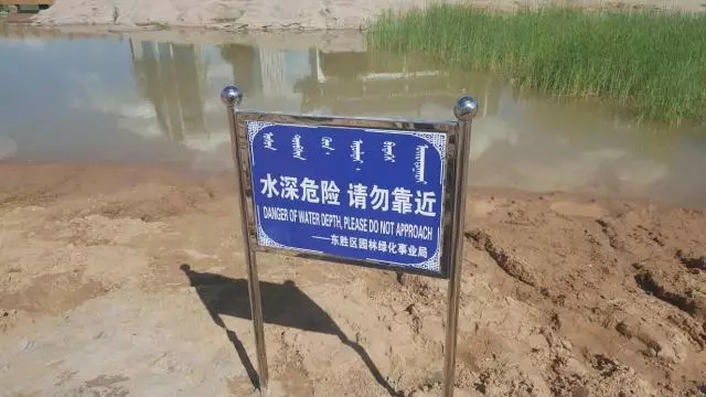 东胜区铁西公园整改后的警示牌