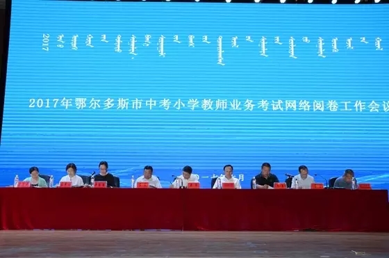 7月4日,2017年鄂尔多斯市初中毕业升学考试小学教师业务考试网络阅卷工作会议召开。会上市教研室负责人与阅卷教师签订了《鄂尔多斯市2017年中考小学教师业务考试网络阅卷工作责任状》,对来自全市高三的284位阅卷教师进行了培训。会上市教育局副局长郑军要求阅卷老师要以高度的使命感和责任心,客观公正,高质量高标准按时完成阅卷任务, 会后,经过一小时的试评阅,各科网上阅卷工作正式开始。