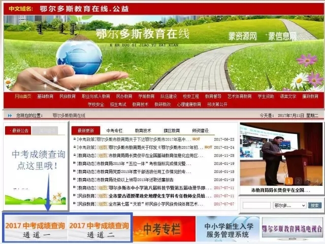 话不多说,想要查分的小伙伴, 登录“鄂尔多斯教育在线(http://www.ordosedu.cn),点击查分通道即可查询,或直接在公众号对话下方点击“便民服务”选择“中考查分”,进入中考成绩查询界面。(需要考生号和身份证号哦!)
