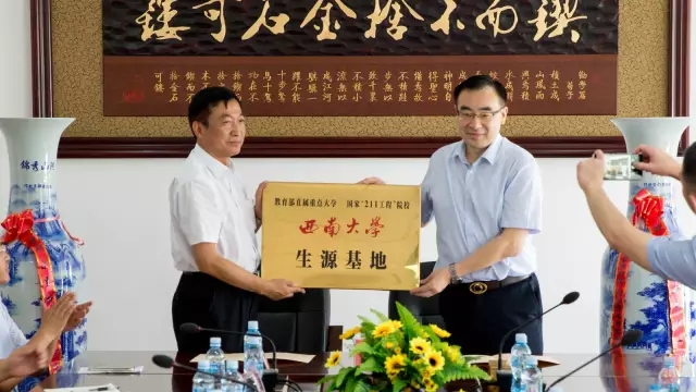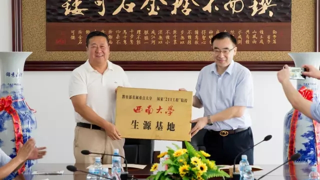 7月13日,西南大学生源基地及就业见习基地授牌仪式在鄂尔多斯市第一中学隆重举行。鄂尔多斯市第一中学成为西南大学优质生源基地,鄂尔多斯市第二中学、鄂尔多斯市第三中学、准格尔旗世纪中学成为西南大学生源基地,东胜区教育局和康巴什新区教育体育局成为西南大学就业见习基地。
