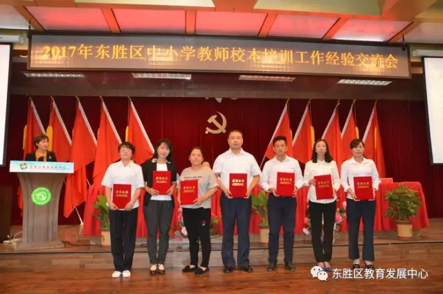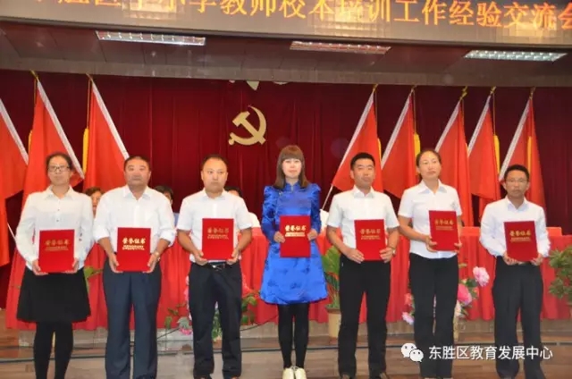 会上,与会领导为东胜区教师校本培训工作典型经验与成果案例获奖单位及个人颁奖,宣布东胜区东联现代中学等10所中小学校成为教师培训基地校并授牌。