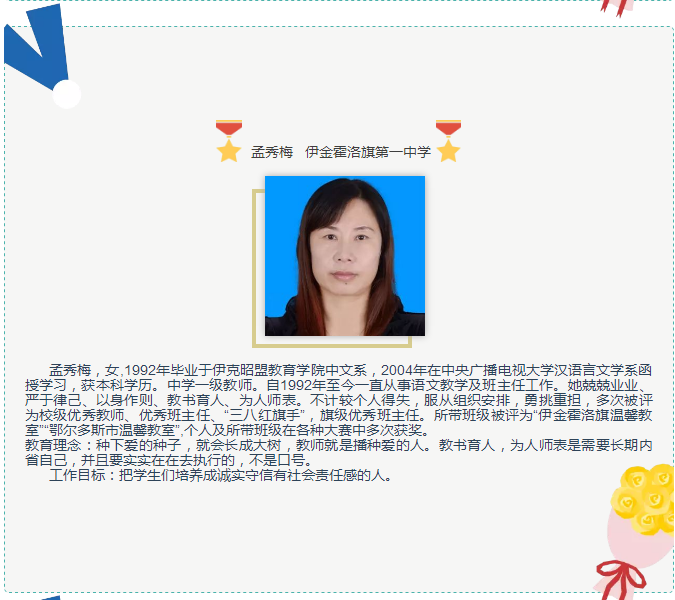 静能春风化雨,润物无声;动能点石成金,琢璞成器。班主任,没有级别的主任,却担当着最大的人生责任。校园里,总能见到你们步履匆匆的身影;教室内,总能听到你们谆谆善诱的话语。可敬可赞,教学之路上挥洒着你们的青春和才华;亦师亦友,育人之途中流淌着你们的辛勤和奉献。