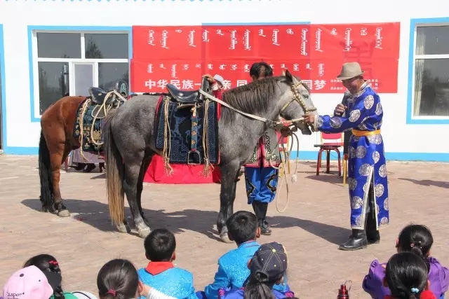 40多分钟后,徒步队伍到达了目的地“德都蒙古农家园”。来自蒙汉学校的126名学生分为10个小组,开展了唱歌、跳舞、丢手绢、老鹰捉小鸡等有趣的互动游戏活动。活动中,蒙古小朋友给汉族小伙伴们教授了一些简单常用的蒙古语。互动活动结束后,师生们听取了杭锦旗马业协会组织开展的马文化讲座。