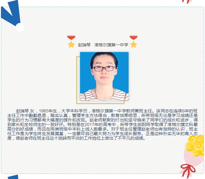 静能春风化雨,润物无声;动能点石成金,琢璞成器。班主任,没有级别的主任,却担当着最大的人生责任。校园里,总能见到你们步履匆匆的身影;教室内,总能听到你们谆谆善诱的话语。可敬可赞,教学之路上挥洒着你们的青春和才华;亦师亦友,育人之途中流淌着你们的辛勤和奉献。