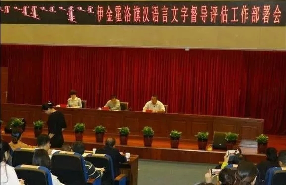 9月26日,伊金霍洛旗迎接自治区汉语言文字督导评估工作部署会召开。旗党政机关、旗直各部门、语委各成员单位、阿镇地区各学校、新闻媒体、主要公共服务行业、社区、各乡镇的分管领导和工作人员及汉语委办公室全体职工近150人参加了会议。