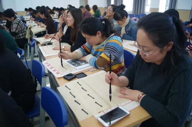此次培训课程安排内容丰富,涵盖课堂展示、教材解读、隶篆基础知识和基本技法、学员笔会、作品展览等。毛笔、钢笔和粉笔同时训练,参训教师的书写能力和书法素养得到了进一步的提升。