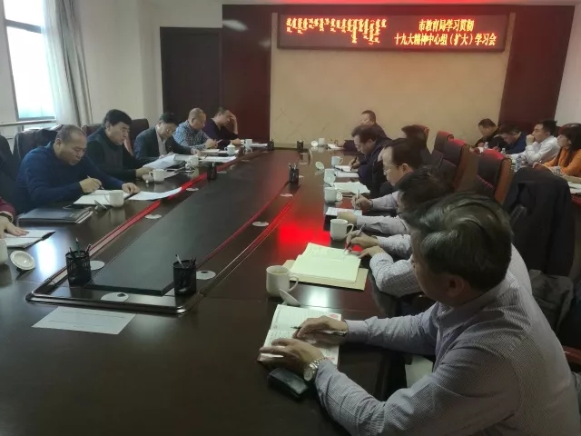 樊局长带领与会人员认真学习了党的十九大的主题、十九大报告的题目和十九大报告13个部分的内容,特别是优先发展教育事业的内容,明确了建设教育强国和加快教育现代化两项重要任务,同时通报了市教育局自十九大召开以来的学习情况,要求全体党员认真学习领会十九大精神,并将十九大精神作为各项工作的行动指南,将十九大精神落到实处。