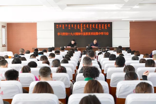 10月31日,市教育局组织召开学习贯彻十九大精神市直教育系统集中学习会,教育大厦驻楼单位全体职工、市直学校党政主要负责人共100余人参与集中学习。