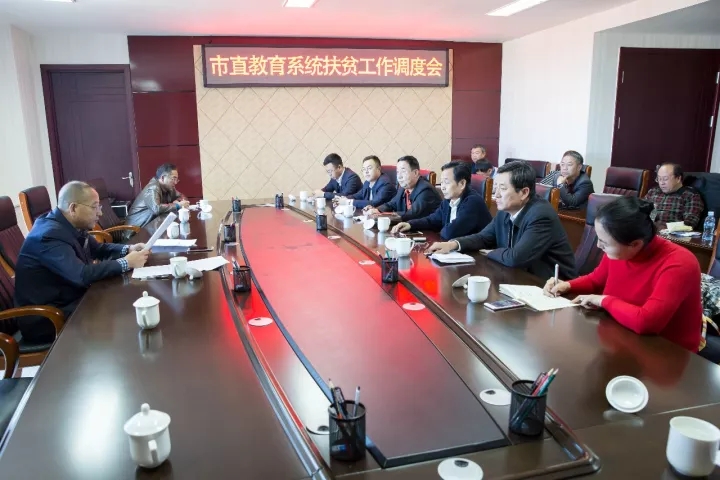 11月10日下午,市教育局召开市直教育系统扶贫工作调度会,市教育局副局长康富主持会议,市直教育系统精准扶贫驻村帮扶工作队各成员、市学生资助管理中心相关工作人员参加会议。