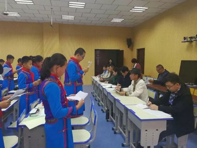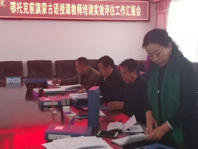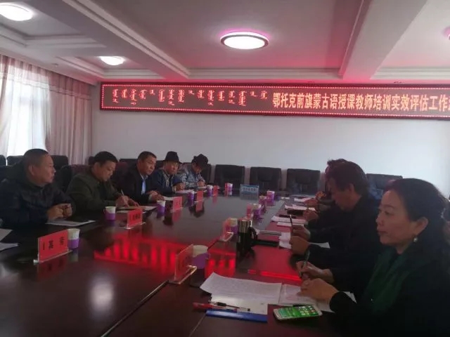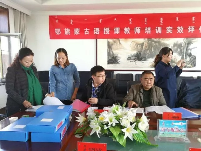 评估督导组一行先后深入到鄂托克旗、乌审旗、鄂托克前旗,听取了市、旗两级开展蒙古语授课中小学学科教师培训实效评估工作情况汇报,查阅了组织保障、前期测评、实际效果等方面的档案资料。评估督导组一行还随机观摩了9名参训教师的课堂教学,并对300余名学生和30余名教师进行问卷调查。