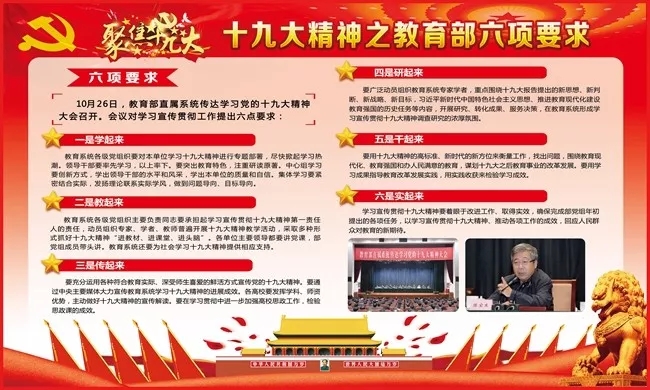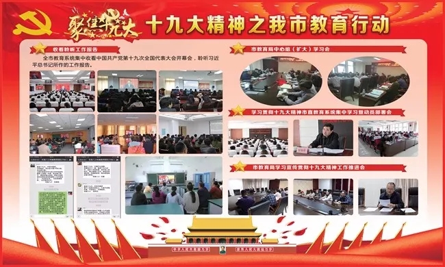 11月8日,市教育局制作了6块宣传展板,营造学习宣传贯彻党的十九大精神的浓厚氛围。