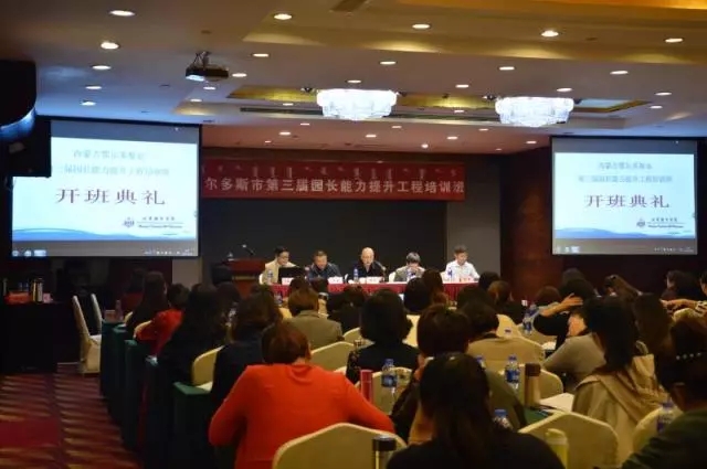 为进一步加强鄂尔多斯市幼儿园园长队伍建设,培养和造就一支具有高度责任感、掌握现代学前教育理论、善于管理的园长队伍,在前两届园长培训班的基础上,于2017年11月15日,鄂尔多斯市第三届园长能力提升工程培训班在上海市开班,鄂尔多斯市教育局朝戈副局长出席了开班仪式,各旗区122名教育行政管理人员和幼儿园园长参加了本期培训学习。