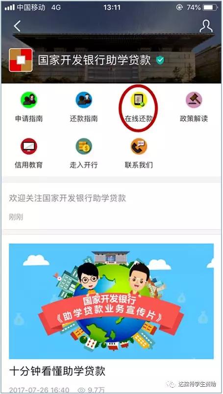 进入国家开发银行助学贷款界面,点击【在线还款】