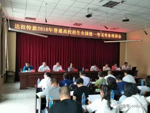 2018年6月6日,鄂尔多斯市各旗区组织召开2018年高考考务培训会。会议传达了自治区、市两级招生考试工作会议精神,安排部署了高考相关工作,并对监考人员和其他各类工作人员进行了培训。自治区考试中心、市区两级教育局巡视参加会议。