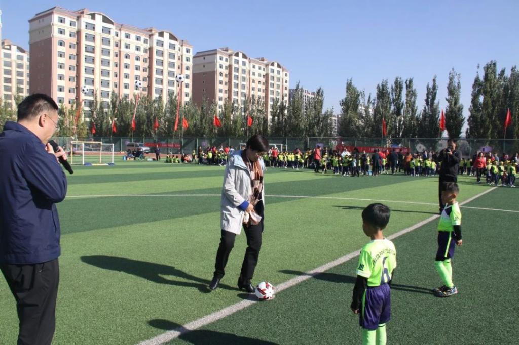 市委副秘书长、市校园足球领导小组办公室主任张秀玲为揭幕战开球