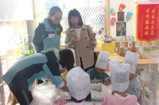 本次交流以观摩、研讨为主要形式,东胜区康和丽舍幼儿园精心安排、注重细节,为大家营造了一个温馨、有序的交流环境。活动开场,康和丽舍幼儿园相关负责人就活动流程、园所情况、课程建设与实施几个方面进行介绍。观摩活动从课程实施角度出发,以中班组生活实践课程之饼干制作、大班组主题课程之区域游戏观摩为切入,全方位展示康幼的教育教学开展情况。特色课程之户外混龄体育大课间的展示中,康幼充分将多元、自主、开放、互动的课程理念融入游戏当中,真正的把游戏的权利还给孩子,孩子们体验着、享受着游戏带来的快乐。