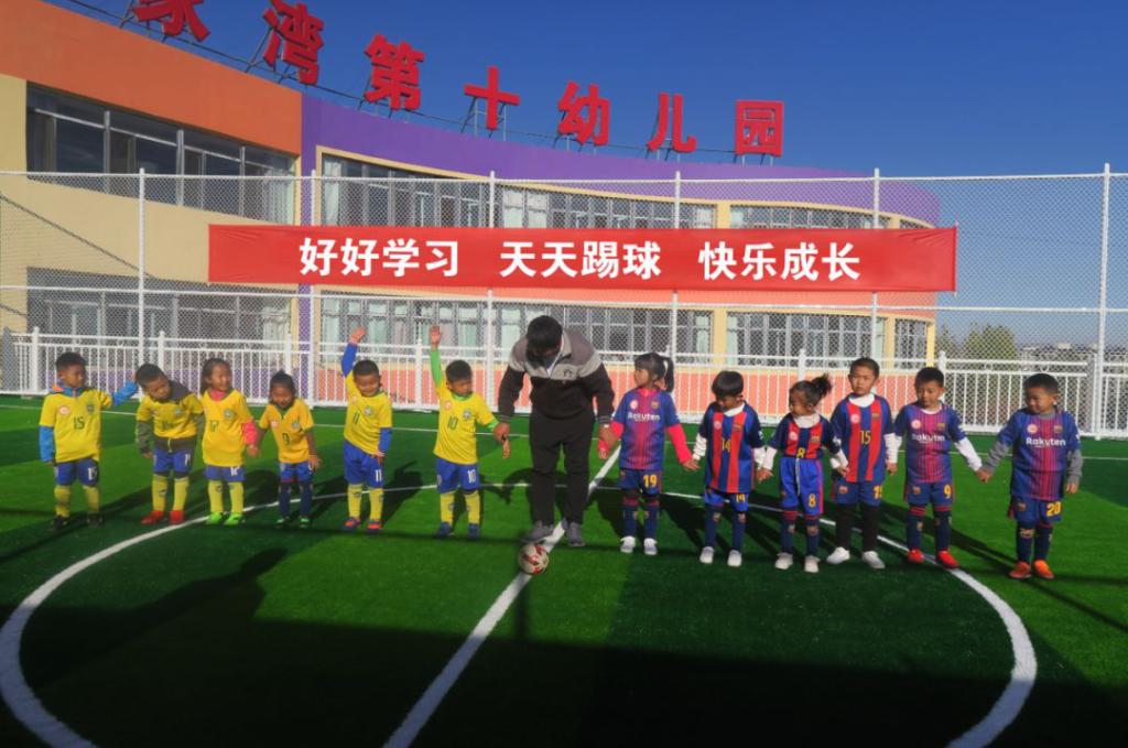 为深入贯彻党的十九大精神,落实《中国足球改革发展总体方案》、《鄂尔多斯市足球中长期发展规划(2017-2050年)》要求,推进准格尔旗学校体育事业创新发展,进一步推动幼儿园足球发展,增强幼儿体质,培养幼儿拼搏进取、团结协作的体育精神,促进幼儿健康快乐成长,准格尔旗在薛家湾镇第十幼儿园兴建了首个笼式足球场。10月17日上午,薛家湾第十幼儿园操场上举行了准旗幼儿园首个笼式足球场落成典礼暨准旗幼儿园秋季足球趣味运动会开幕仪式。准旗教育体育局相关负责人,部分小学校长,准旗足协、湖西社区相关负责人参加了开幕式。