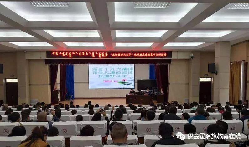 10月12日,伊金霍洛旗教育局举办“我讲你听大家学”党风廉政建设主题宣讲活动。伊旗教育局全体在家领导,各股室、二级单位全体干部职工以及阿镇地区各中小学幼儿园的党员代表和教师代表,共计300余人参加活动。
