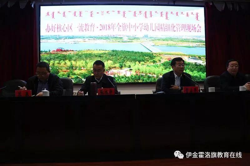 为深入学习领会习近平新时代中国特色社会主义思想,全面贯彻党的十九大精神、全国教育大会精神,进一步提升伊旗各中小学幼儿园精细化管理水平,促进伊旗教育内涵式发展,11月6日至9日,伊金霍洛旗举行2018年全旗中小学幼儿园精细化管理现场会。伊旗人大常委会副主任韩丽、伊旗教育局领导班子、全旗各中小学幼儿园校园长及各股室二级单位负责人等100余人参加现场会。
