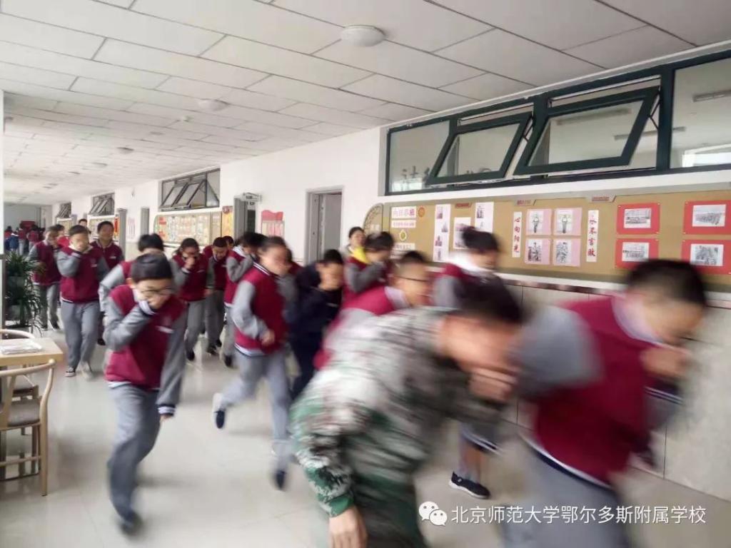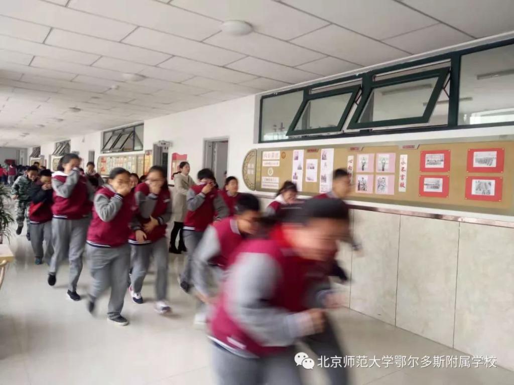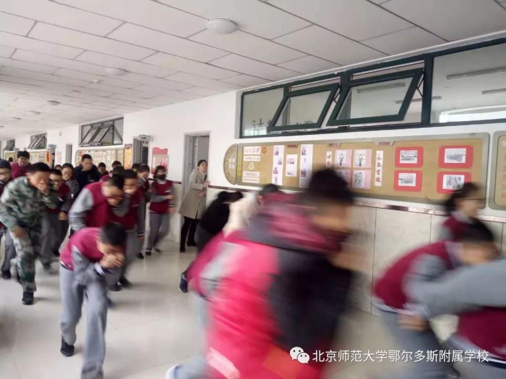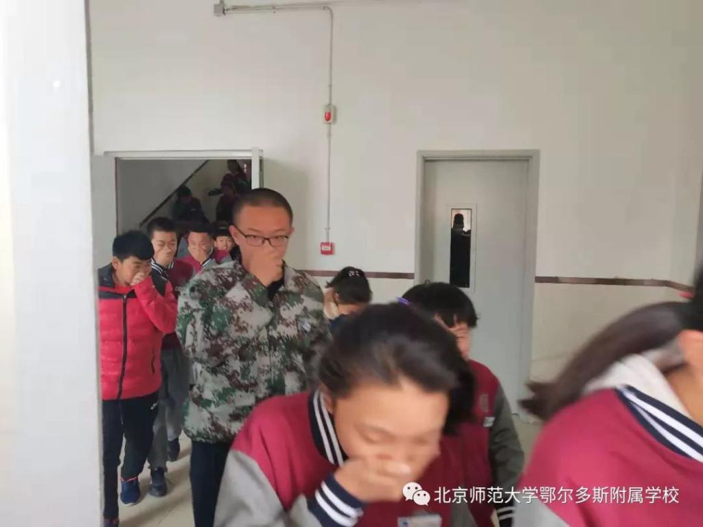 为加大消防避险、安全逃生自救常识宣传力度,建设平安和谐校园,北京师范大学鄂尔多斯附属学校坚持“预防为主,综合整治,安全第一”的原则,于11月7日组织消防安全疏散演练。