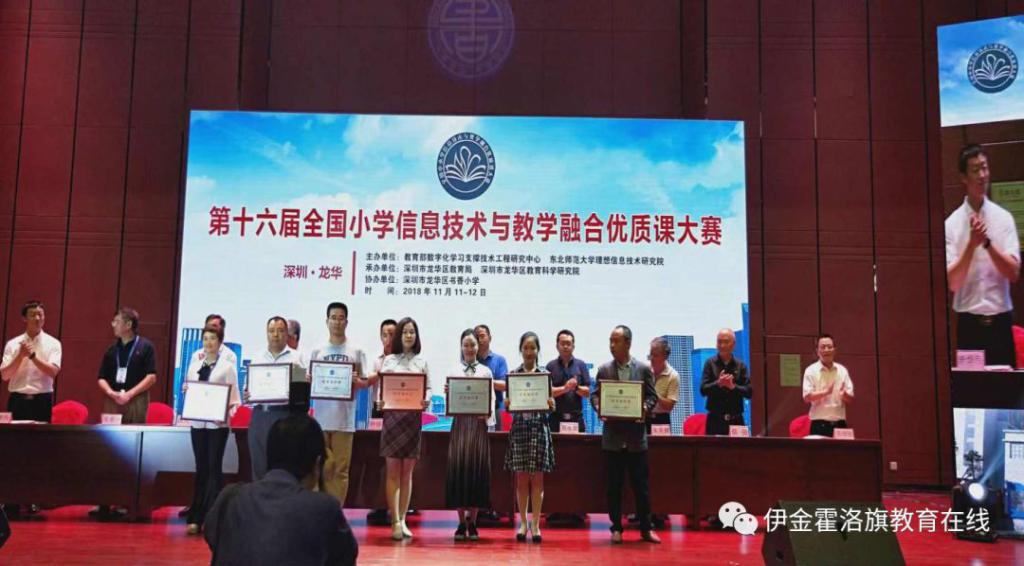 在近期举行的全国信息技术与教学融合优质课大赛中,伊金霍洛旗49位教师喜获佳绩。大赛分为幼儿园、小学、初中三个学段,幼儿园组比赛中1人荣获全国特等奖,4人荣获全国二等奖,2人荣获全国三等奖;小学组比赛中2人荣获全国一等奖,14人荣获全国二等奖,1人荣获全国三等奖;初中组比赛中3人荣获全国一等奖、20人荣获全国二等奖、2人荣获全国三等奖。伊旗教育局、伊旗现代教育技术与实验教学研究室荣获全国优秀组织奖。