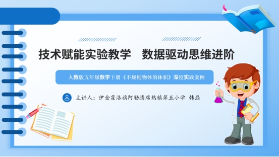 伊金霍洛旗阿勒腾席热镇第五小学韩磊老师围绕人教版五年级数学下册《不规则物体的体积》一课中AI应用,以技术赋能实验教学,构建数据驱动的智慧教学模式。基于教材与学情分析,设定知识、能力与素养目标,通过数智作业系统前测、国家中小学智慧教育平台分层预习、希沃白板深度互动等技术手段,将信息技术应用贯穿课前、课中、课后教学全流程。融合教学评一体化设计,运用多元评价工具实时反馈,实现“数据采集一精准分析一精准干预”闭环。实践表明,学生对转化思想的理解与应用能力显著提升,课堂互动性增强,同时为教师专业成长提供数据支撑,彰显了技术在推动数学实验从验证向探究升华中的重要价值。