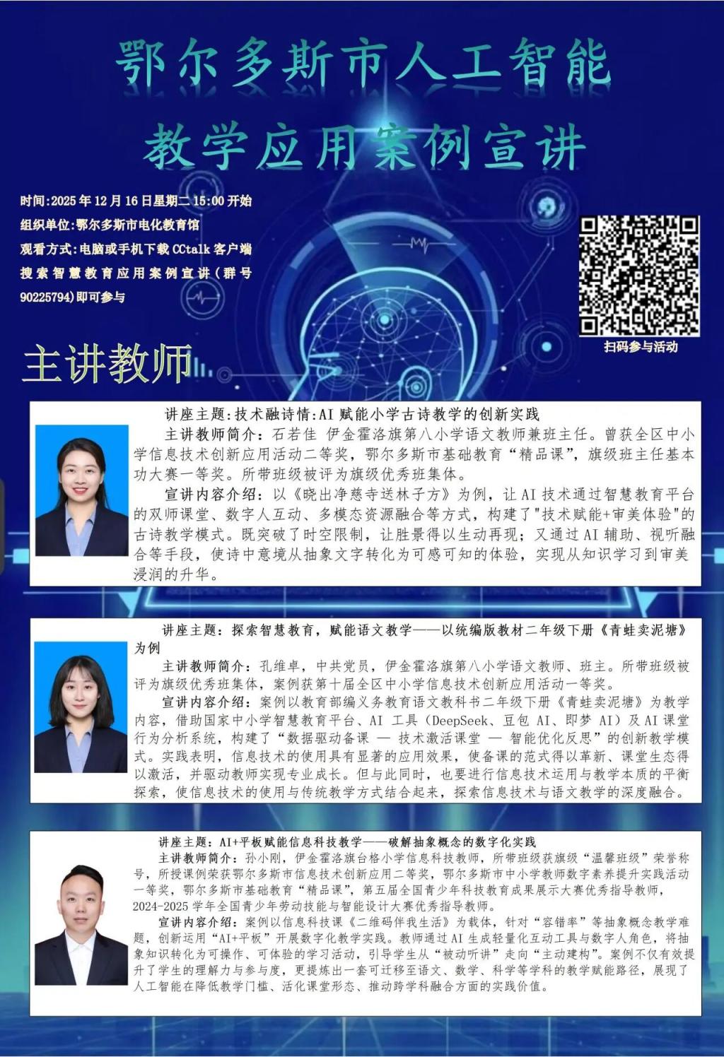 鄂尔多斯市人工智能教学应用案例网络宣讲活动预告
