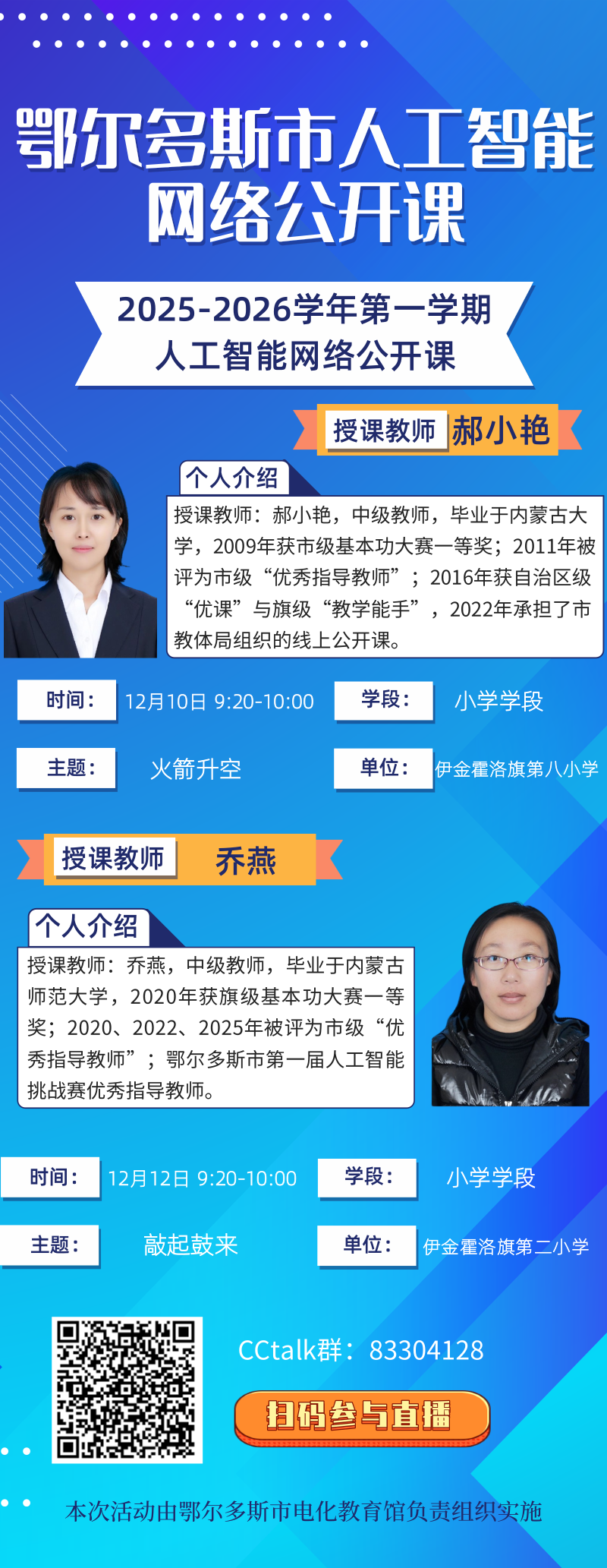 上一条:鄂尔多斯市人工智能教学应用案例网络宣讲活动预告 下一条:鄂尔多斯市电化教育馆组织开展第十场人工智能教学应用案例网络宣讲活动